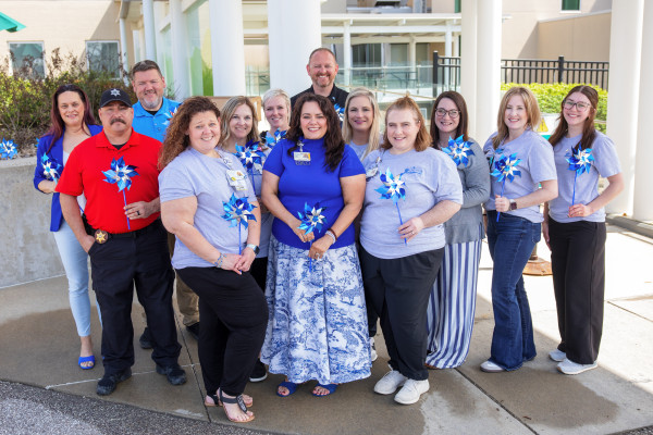Hoops Family Children’s Hospital Child Advocacy Center recognizes Child Abuse Prevention Month with pinwheel planting